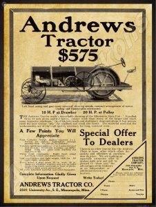 1915 Andrews Tractors 1admin2020-10-08T15:35:42-04:00 1915 Andrews Tractors Collectible Metal Sign: Minneapolis, Minnesota