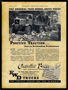 foxtrot 1937 FWD 1admin2020-11-01T01:21:24-04:00 1937 FWD Four Wheel Drive Trucks Collectible Metal Sign: “Controlled Power” Clintonville, Wisconsin