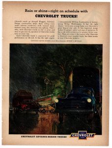 alfa 1951 chevrolet trucks 1admin2020-12-13T17:04:11-05:00 1951 Chevrolet Trucks Collectible Advertisement: Rain or Shine – Right on Schedule with Chevrolet Trucks!