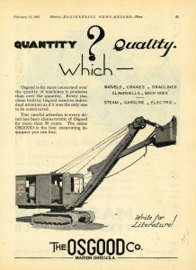 tango 1927 osgood 1admin2021-01-13T02:00:14-05:00 1927 Osgood Shovel Ad: Marion, Ohio – Clamshell Dragline, Back Hoe, Crane