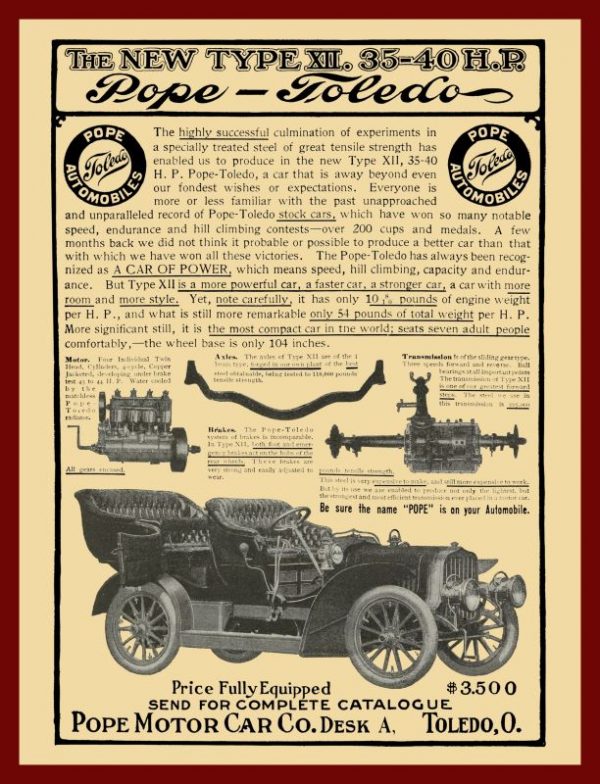1906 Pope Motor Car Collectible NEW Metal Sign: Type XII – Toledo, OhiO