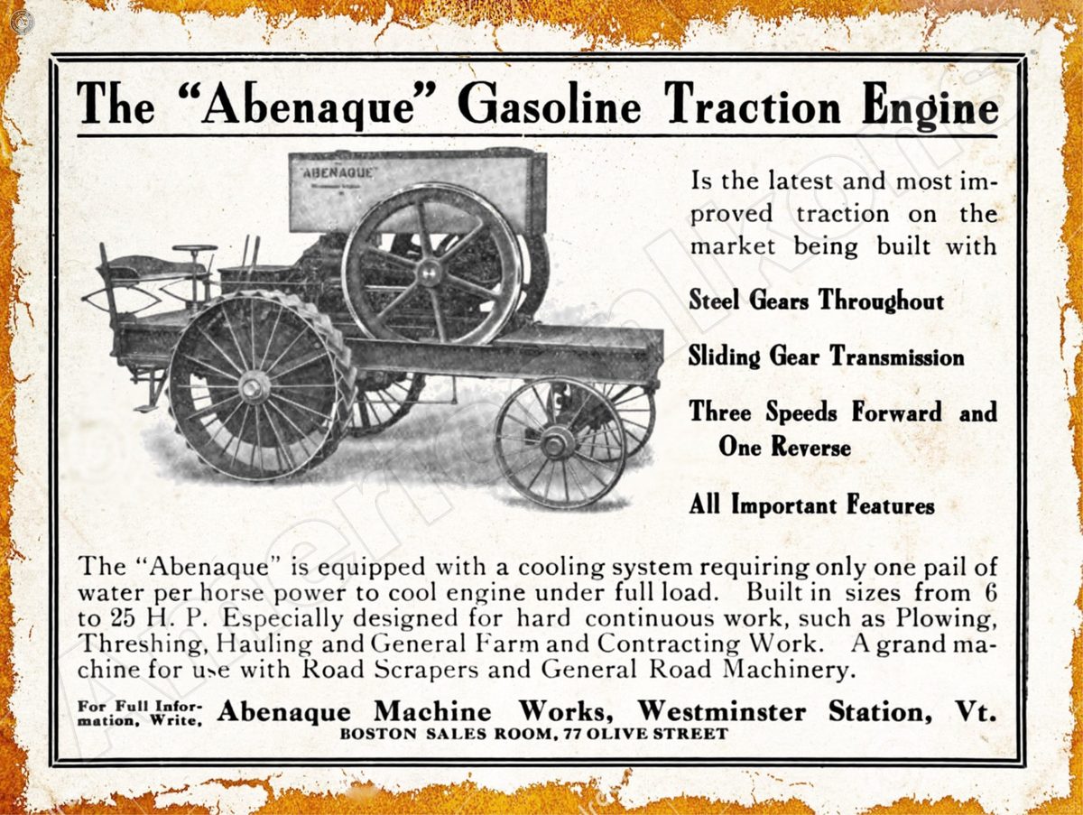1907 Abenaque Gasoline Traction Engine Collectible New Metal Sign: Westminster Station, Vermont