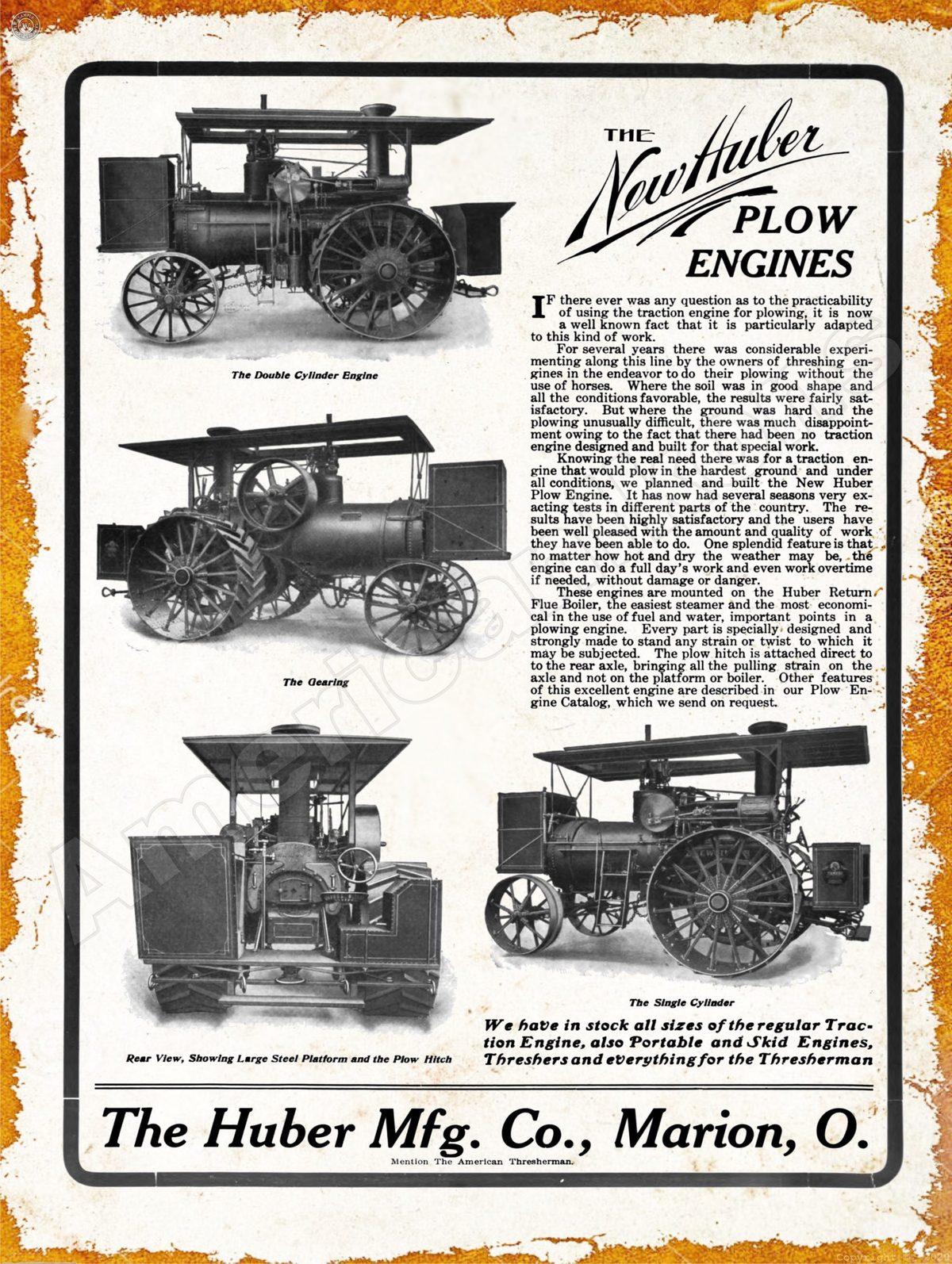 1907 Huber Manufacturing Co. Plow & Traction Tractor Engine Collectible New Metal Sign