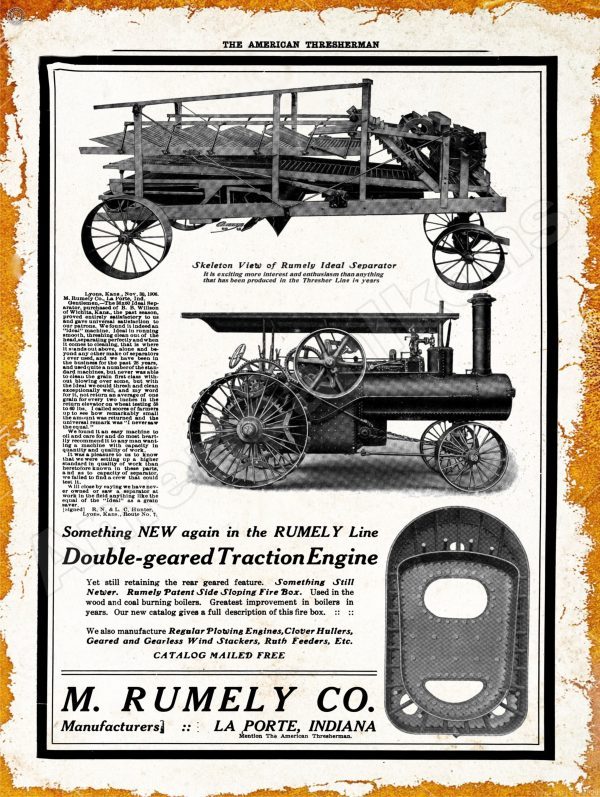 Tags: collectible, la porte indiana, metal sign, rumely traction engine