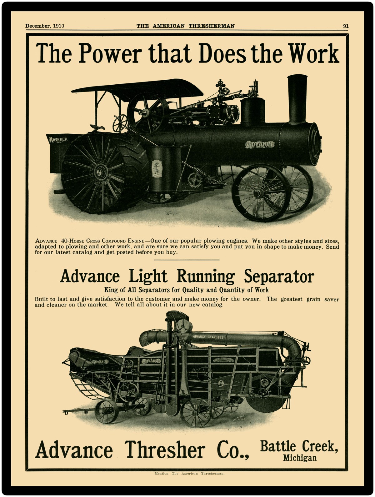 1910 Advance Cross Compound Traction Engine & Light Separator Reproduction Metal Sign