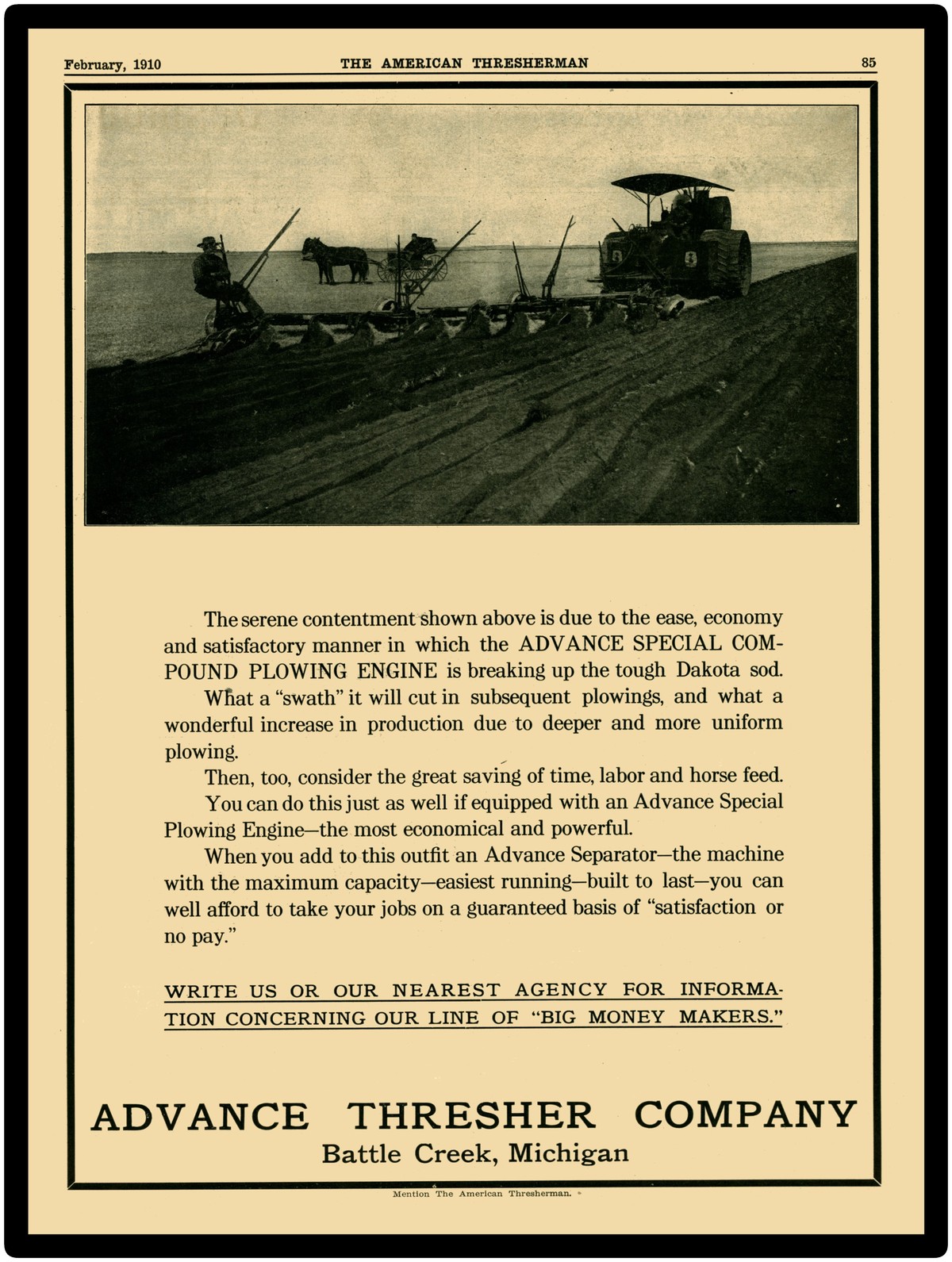 1910 Advance Steam Traction Engine Battle Creek Michigan Reproduction Metal Sign