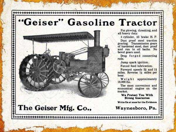 1911 Geiser Gasoline Tractor Collectible Metal Sign: Waynesboro, Pennsylvania