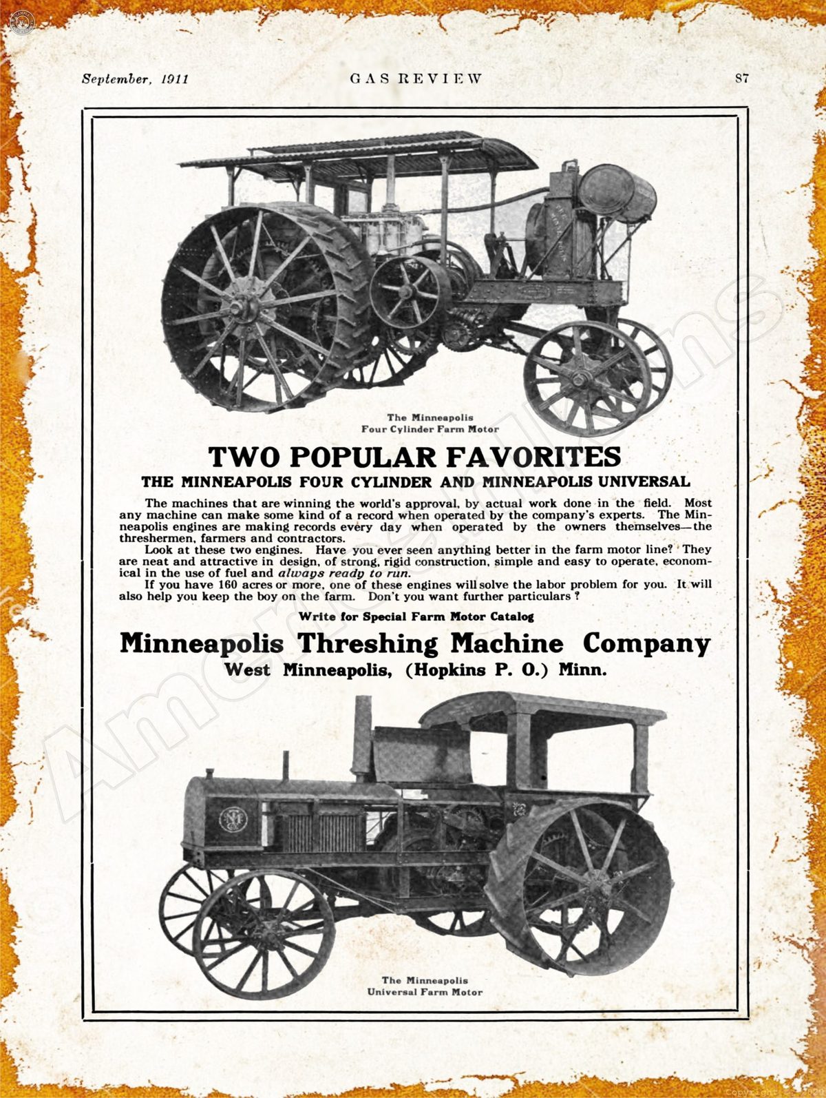 1911 Minneapolis (Moline) Universal Tractor Collectible Metal Sign: Minneapolis, Minnesota