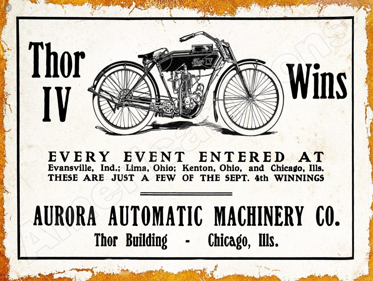 1911 Thor IV Motorcycles Collectible New Metal Sign: Aurora Automatic Machinery Company – Chicago, Illinois