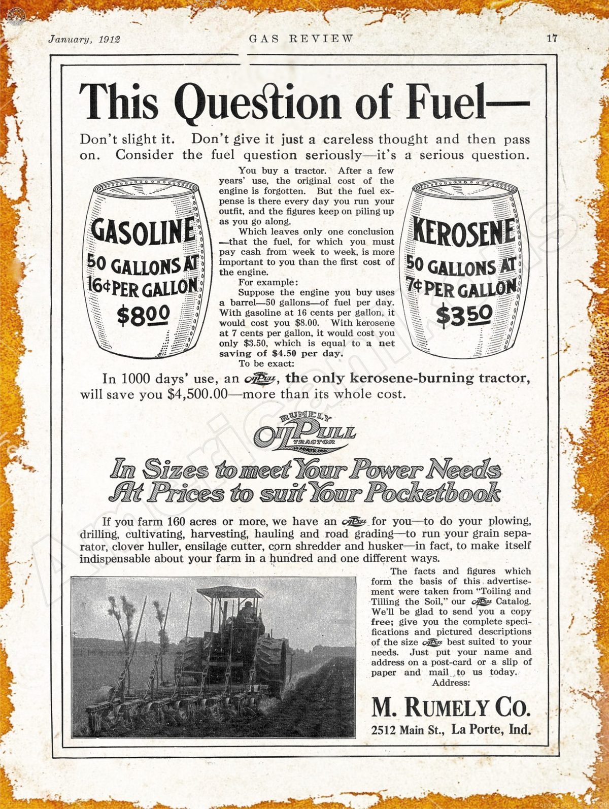 1912 Rumely Oil Pull Tractors Collectible New Metal Sign: Kerosene Power