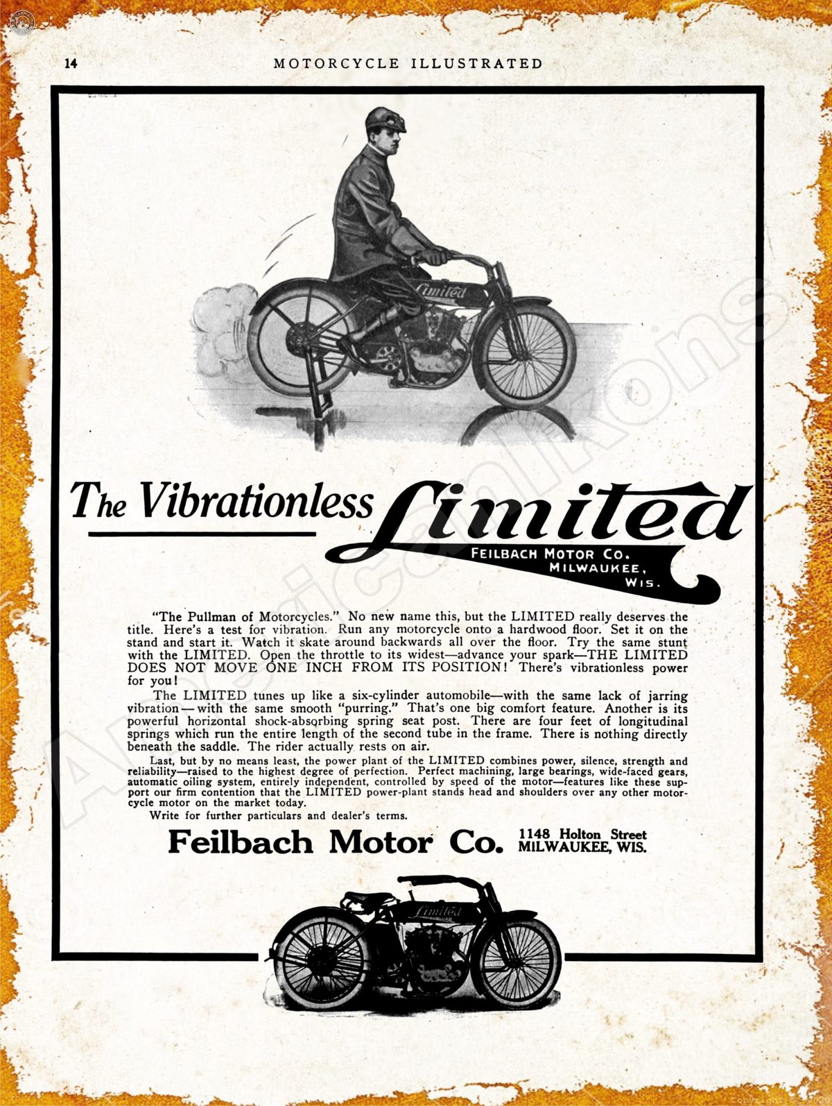 1914 Feilbach Motorcycles Collectible New Metal Sign: Milwaukee, Wisconsin