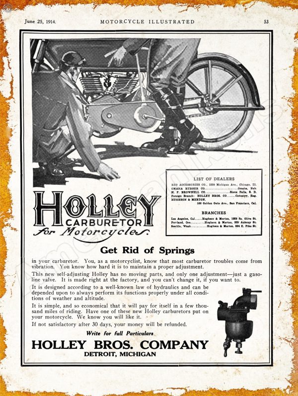 1914 Holly Carburetors for Motorcycles Collectible New Metal Sign: Detroit, Michigan