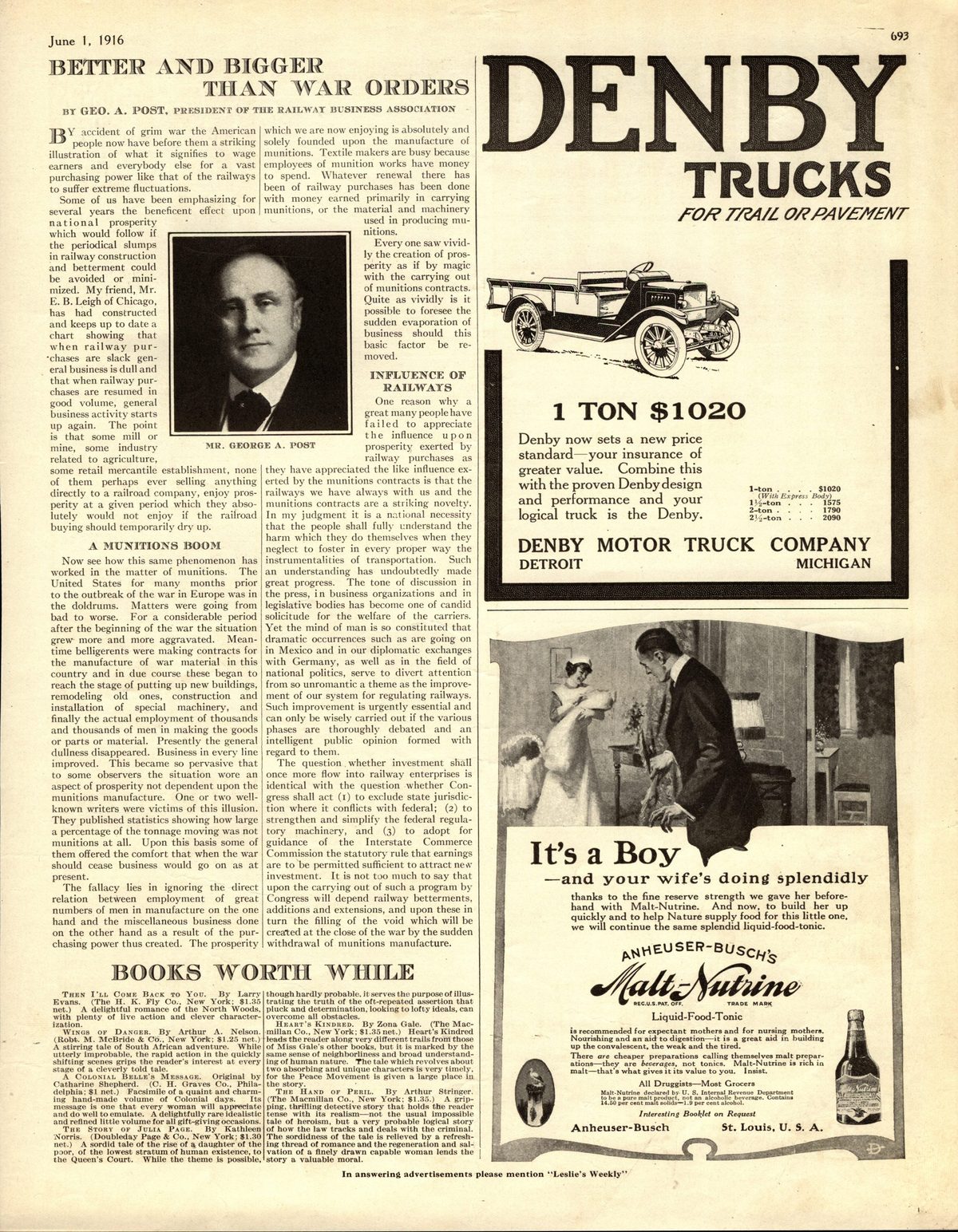 1916 Denby Motor Truck Company Collectible Advertisement: Detroit, Michigan