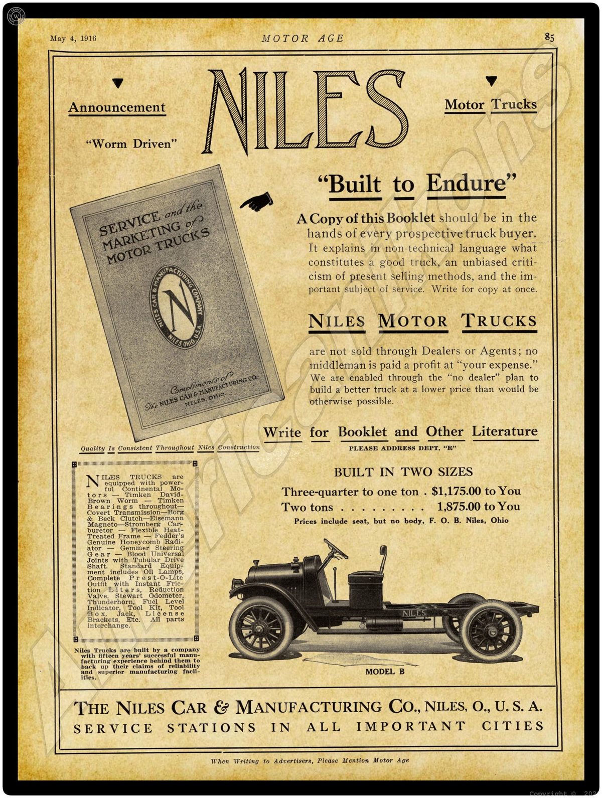 1916 Niles Motor Trucks Collectible Metal Sign: Niles, Ohio