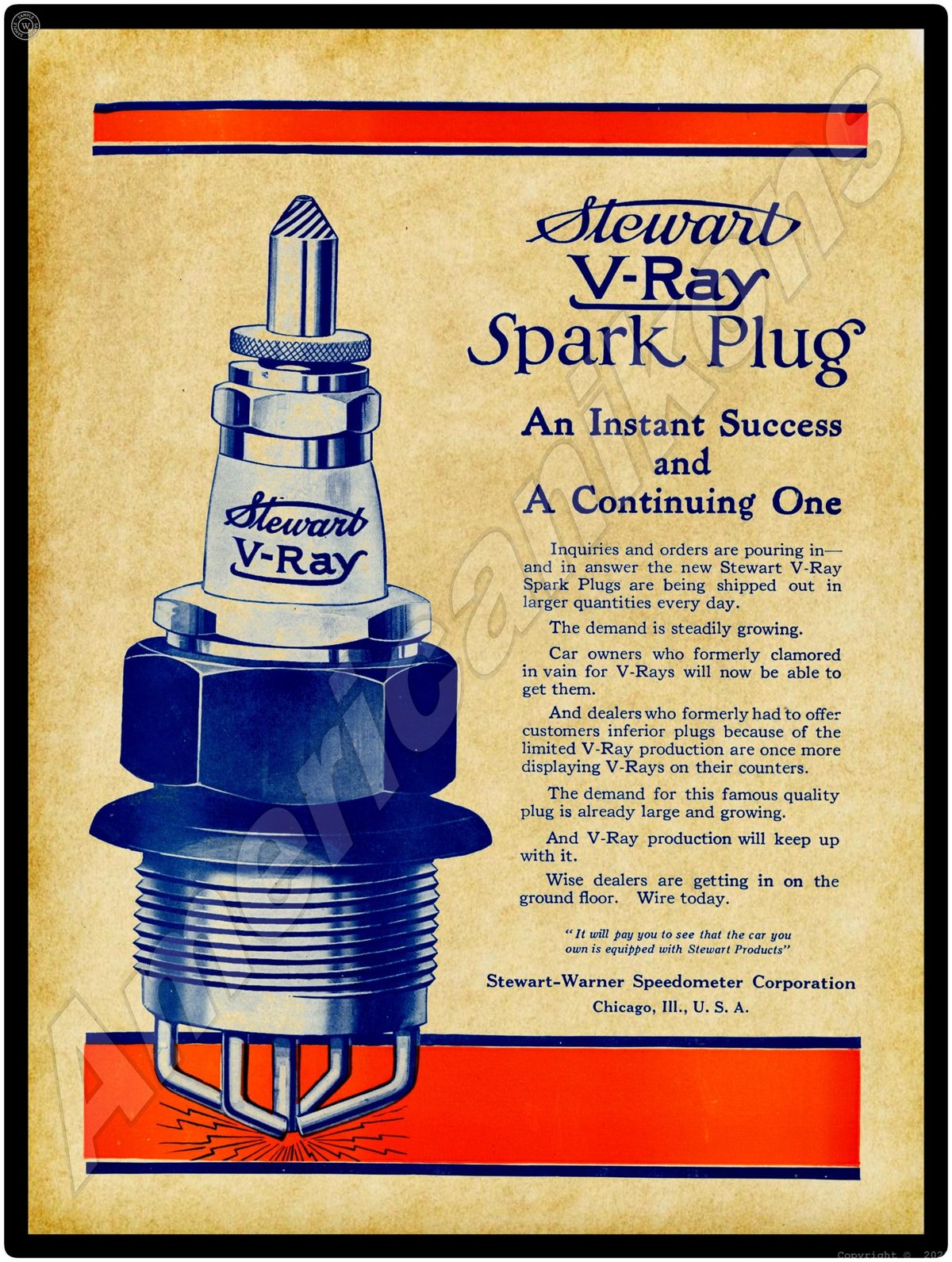 1916 Stewart V-Ray Spark Plugs Collectible Metal Sign: Stewart Warner Company – Chicago, Illinois