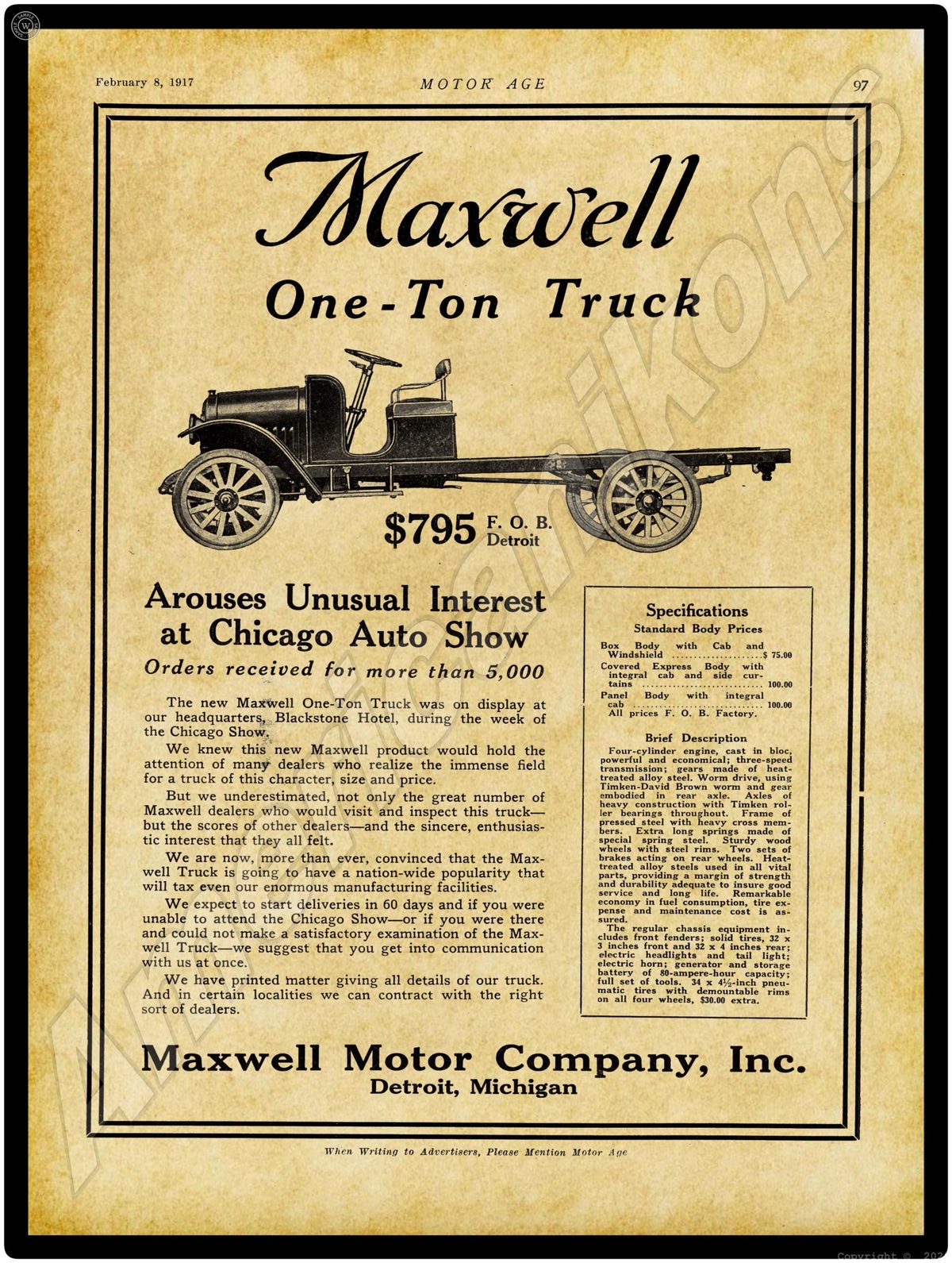 Inventory Code: 1917 Maxwell Motor Trucks 1