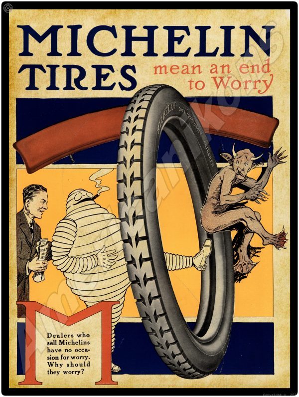 1917 Michelin Tires Collectible Metal Sign: Michelin Man Featured