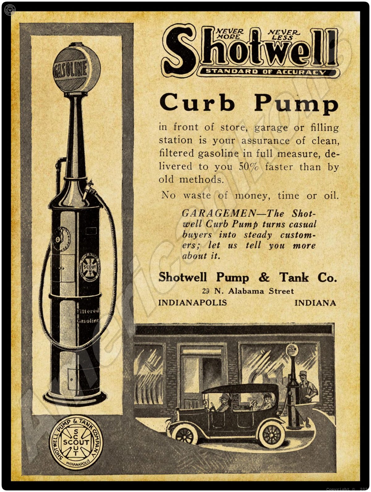 1917 Shotwell Pump & Tank Company Collectible Metal Sign: Gas Pumps – Indianapolis, Indiana