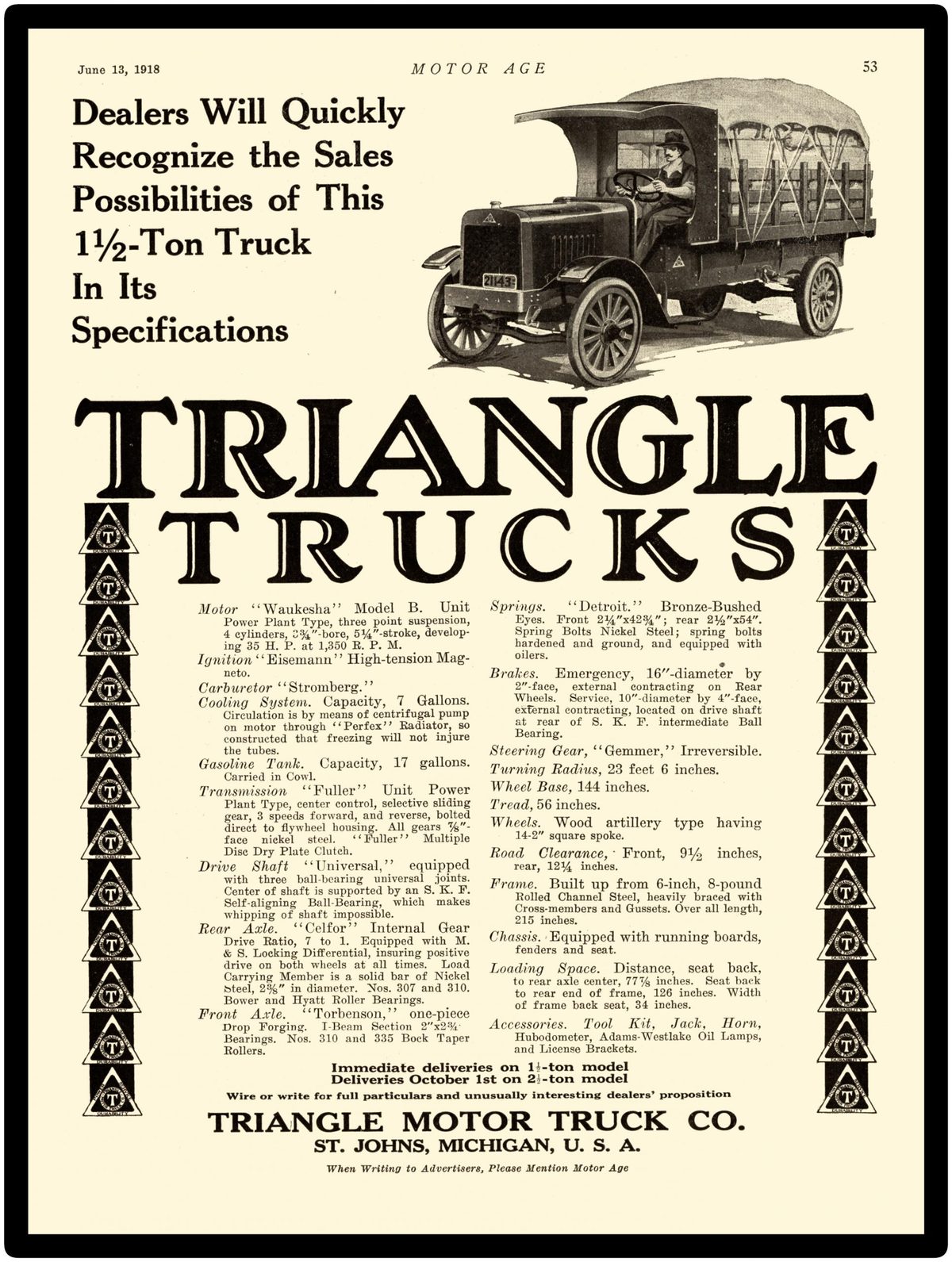 1918 Triangle Motor Truck Company Collectible New Metal Sign: St. Johns, Michigan