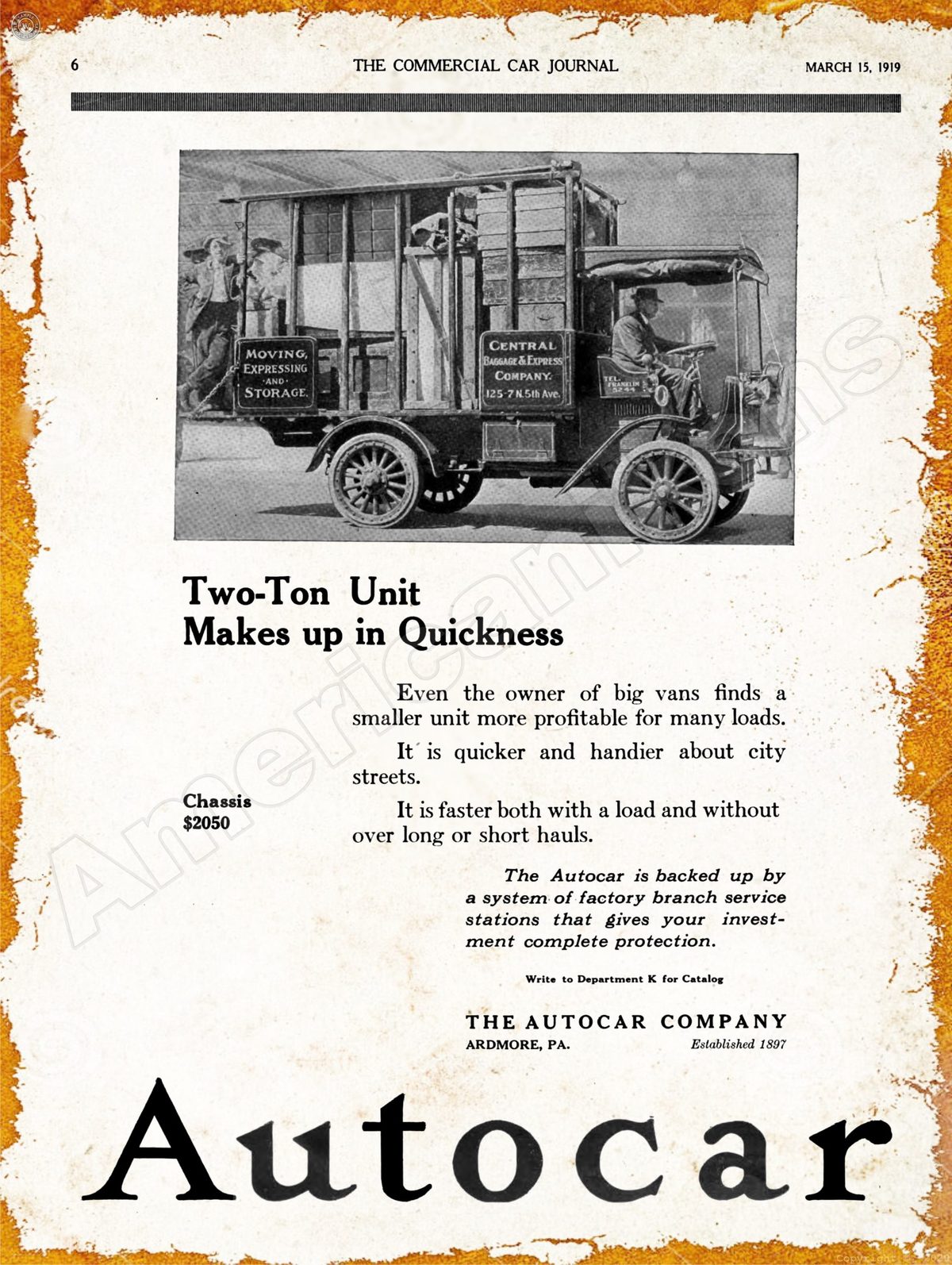 1919 Autocar Trucks Collectible New Metal Sign: Ardmore, Pennsylvania