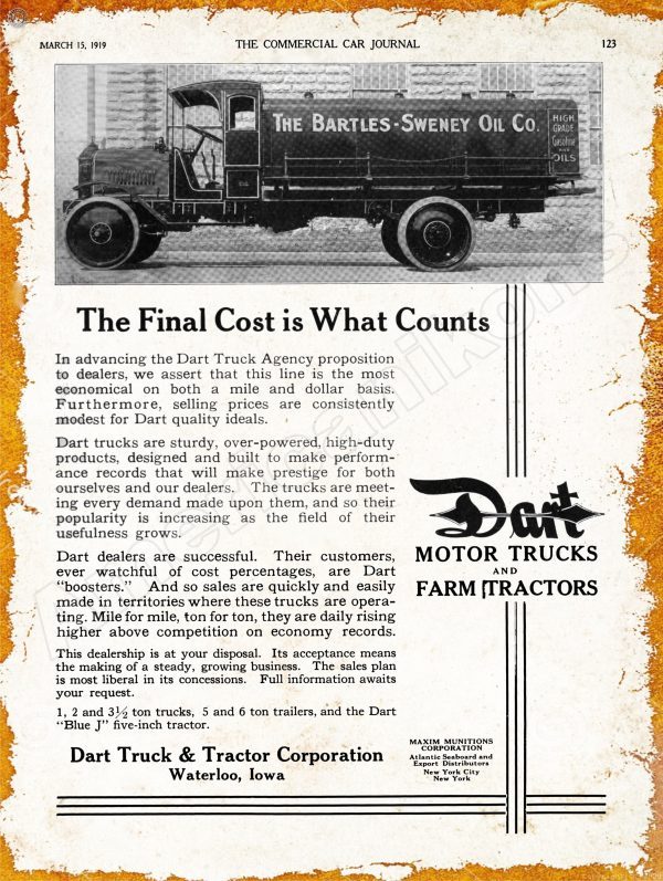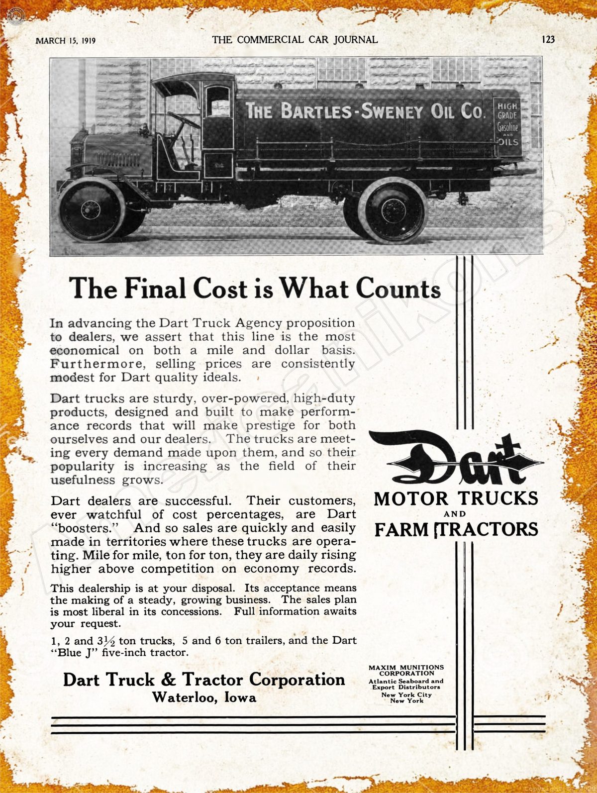1919 Dart Motor Trucks Collectible New Metal Sign: Waterloo, Iowa