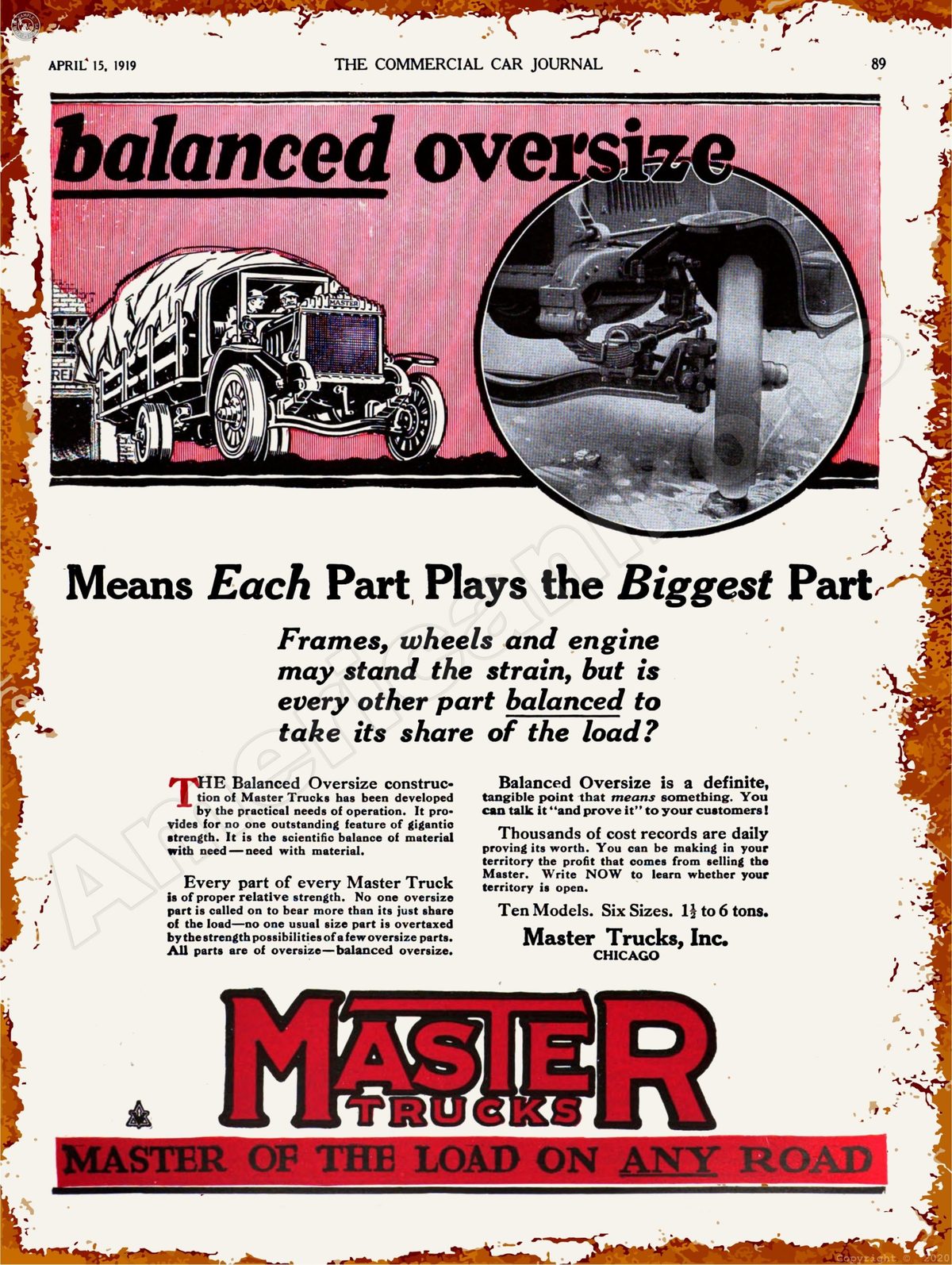 1919 Master Trucks Collectible Metal Sign: Chicago, Illinois