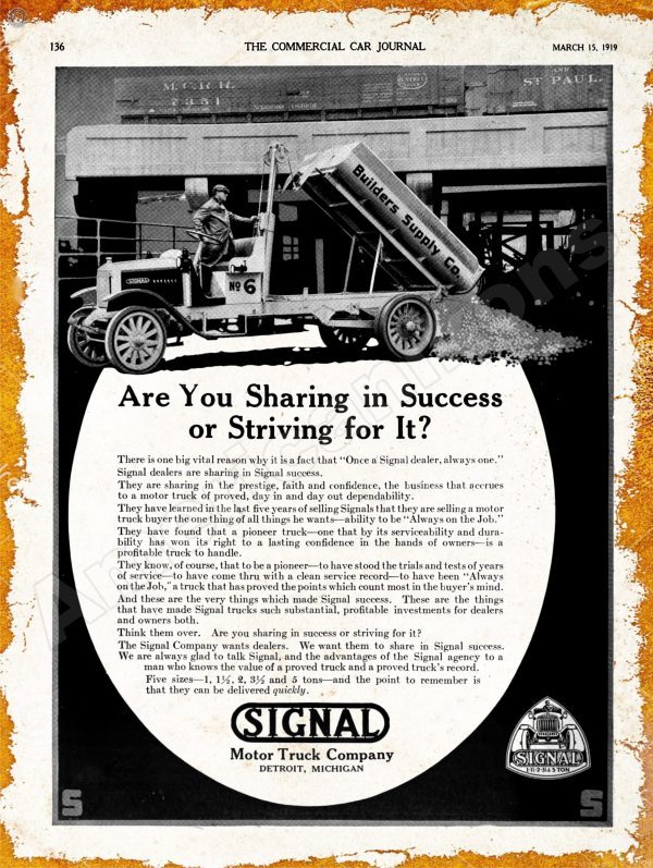 Tags: collectible, detroit michigan, metal sign, signal motor trucks