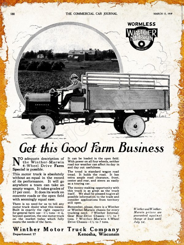 1919 Winther Motor Trucks Collectible Metal Sign: Kenosha, Wisconsin
