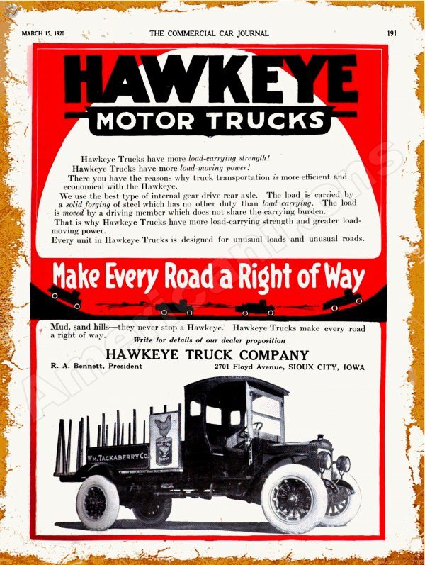 1920 Hawkeye Trucks Collectible Metal Sign: Sioux City, Iowa
