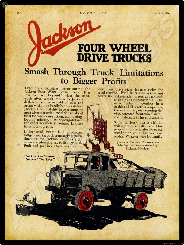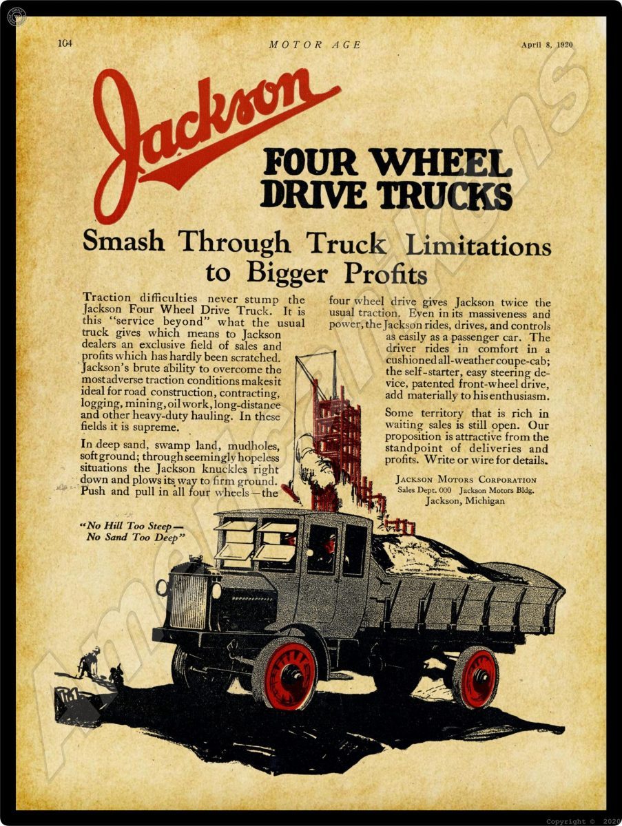1920 Jackson Motor Trucks Collectible Metal Sign: Jackson, Michigan