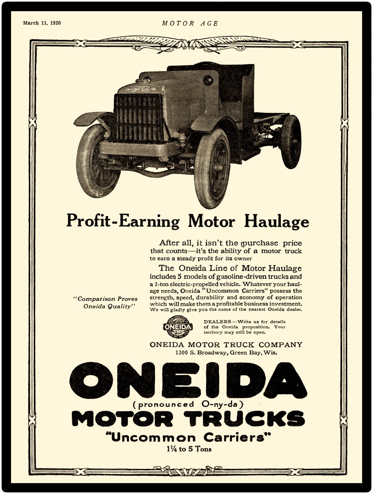 1920 Oneida Motor Trucks Collectible Metal Sign: Green Bay, Wisconsin