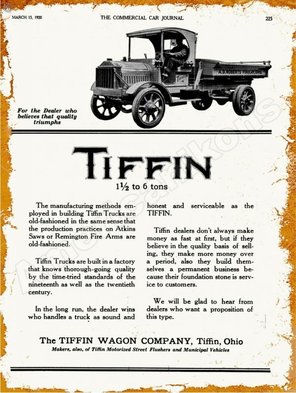 1920 Tiffin Motor Trucks Collectible Metal Sign: Tiffin Wagon Company – Ohio