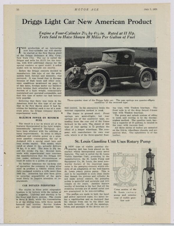 1921 Driggs Ordnance & Mfg. Co. Story & Photo: Driggs Light Car – New Haven, Connecticut & New York City
