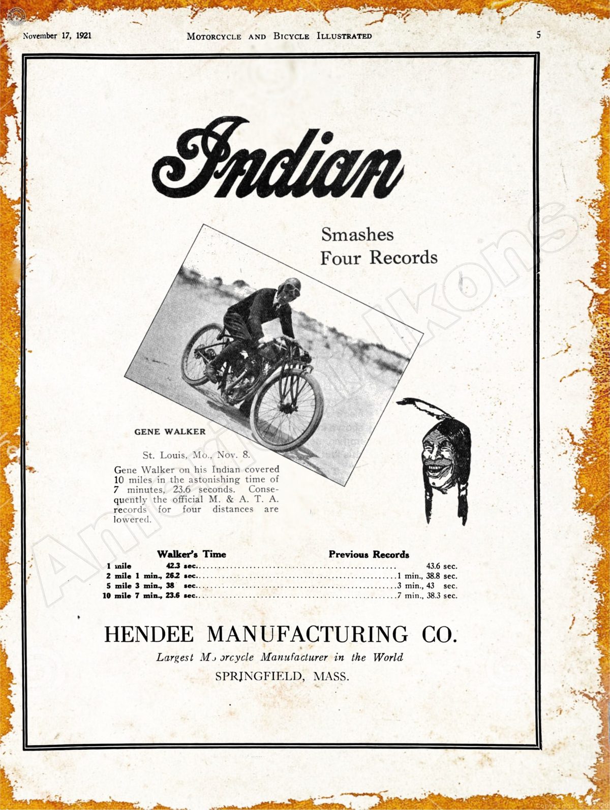 1921 Indian Motorcycles Collectible New Metal Sign: Hendee Manufacturing – Springfield, Massachusetts
