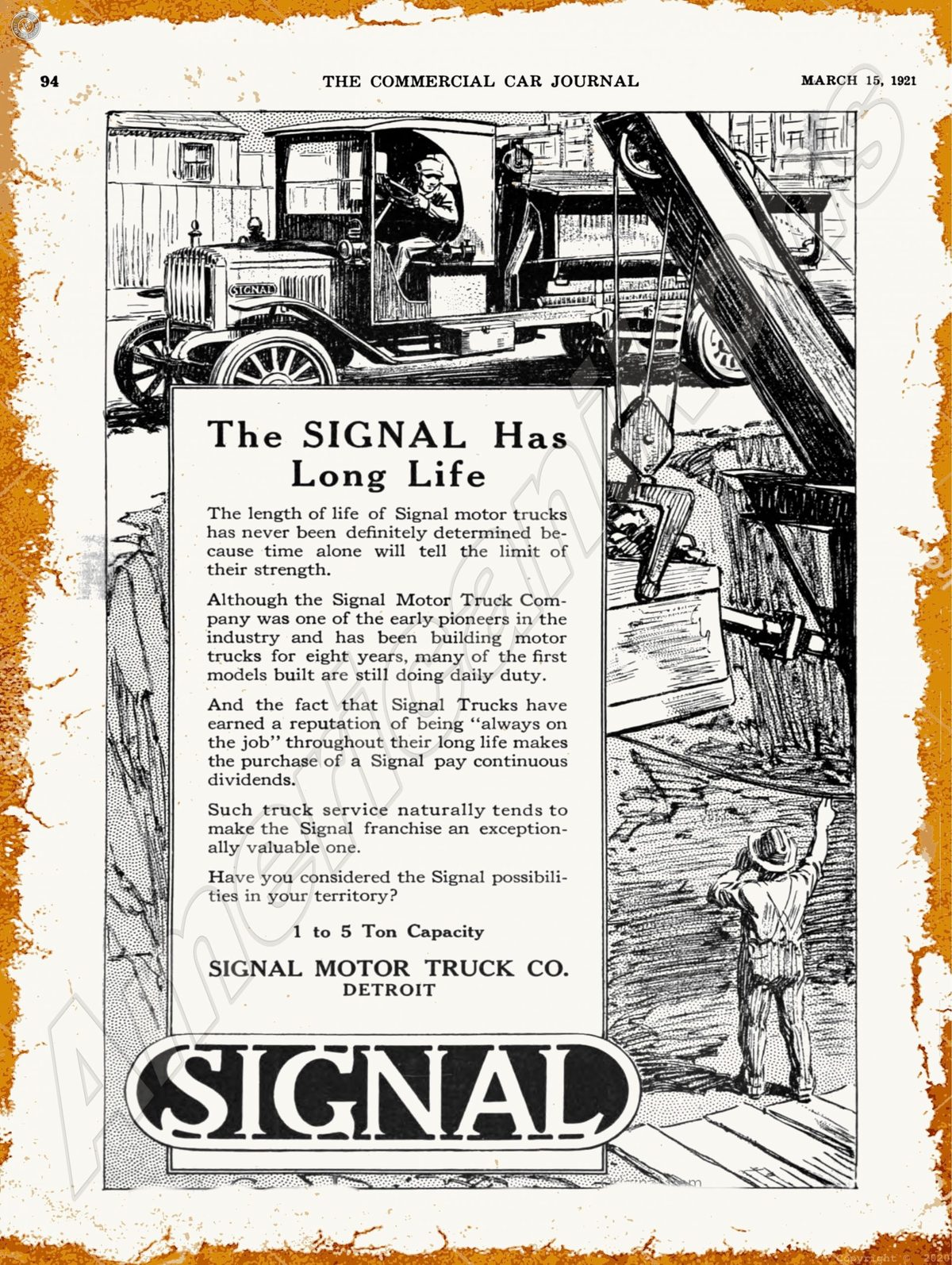 1921 Signal Motor Trucks, Collectible Metal Sign: Detroit, Michigan