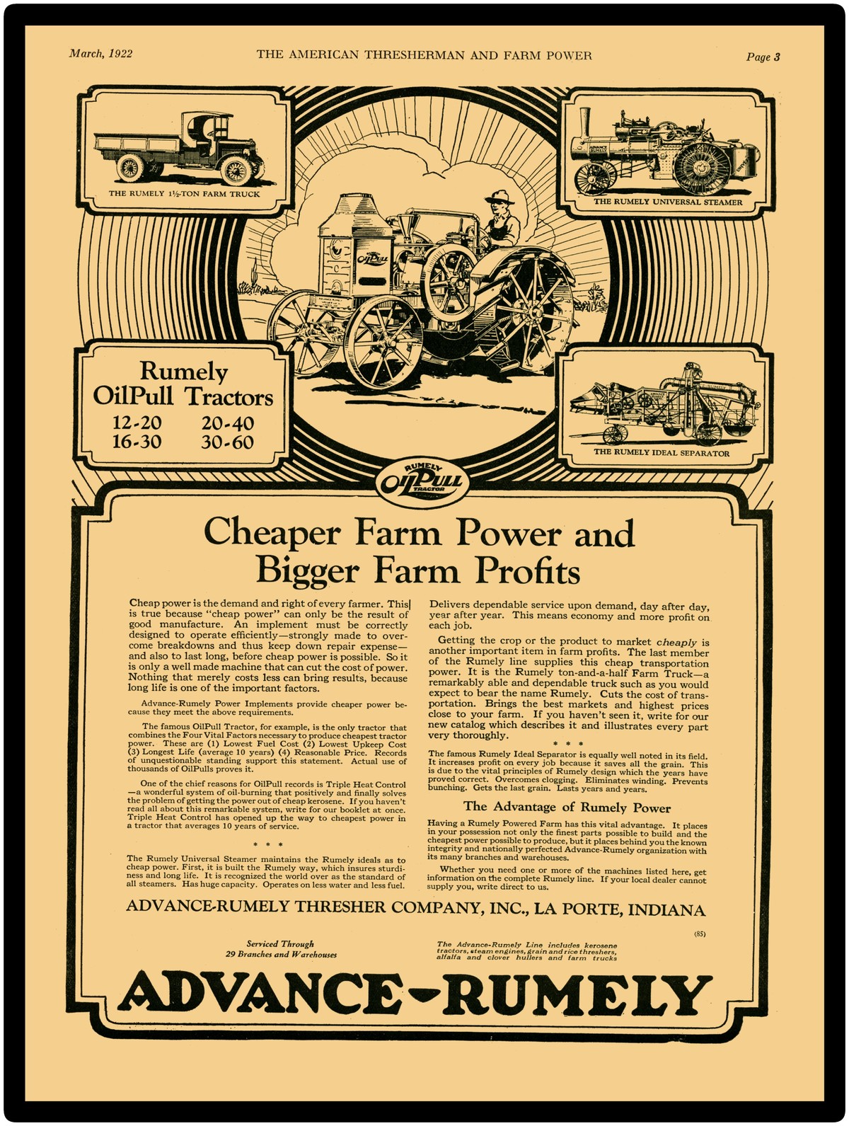 1922 Advance Rumely Universal Steamer & Ideal Separator Reproduction Metal Sign