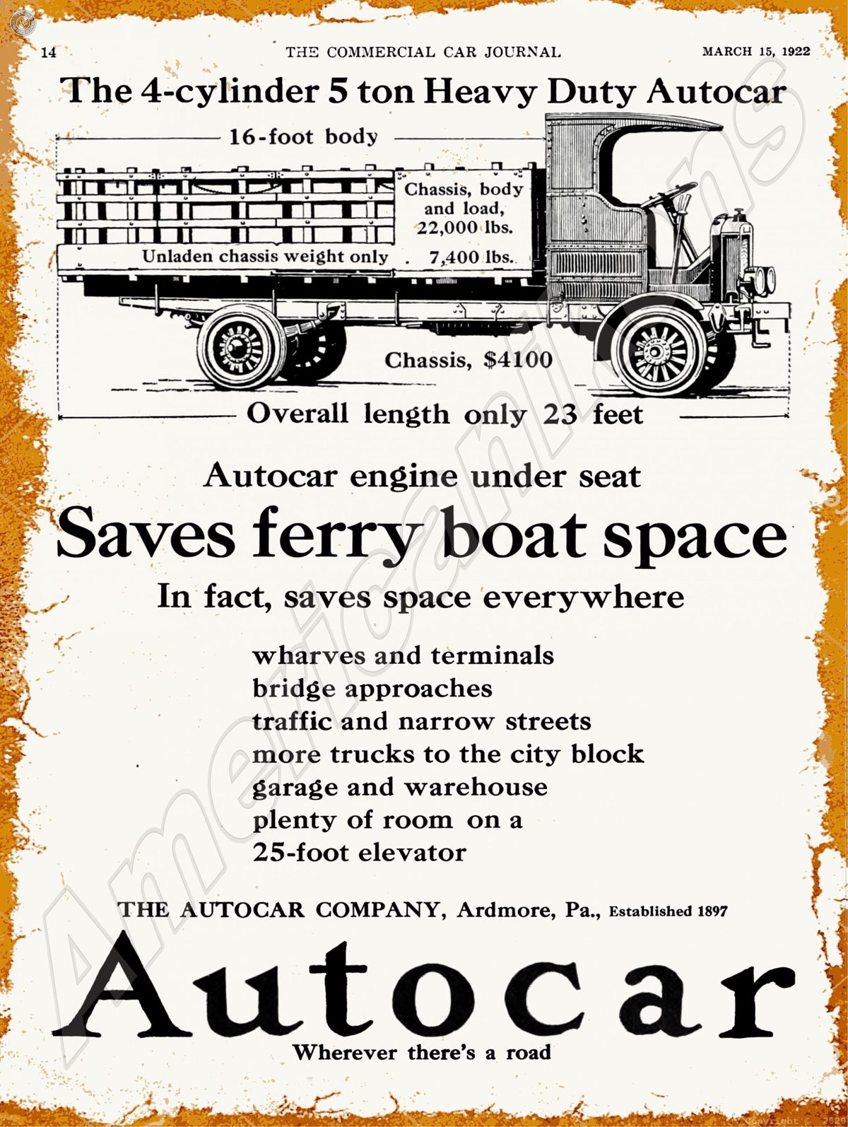 1922 Autocar Trucks Collectible Metal Sign: Ardmore, Pennsylvania