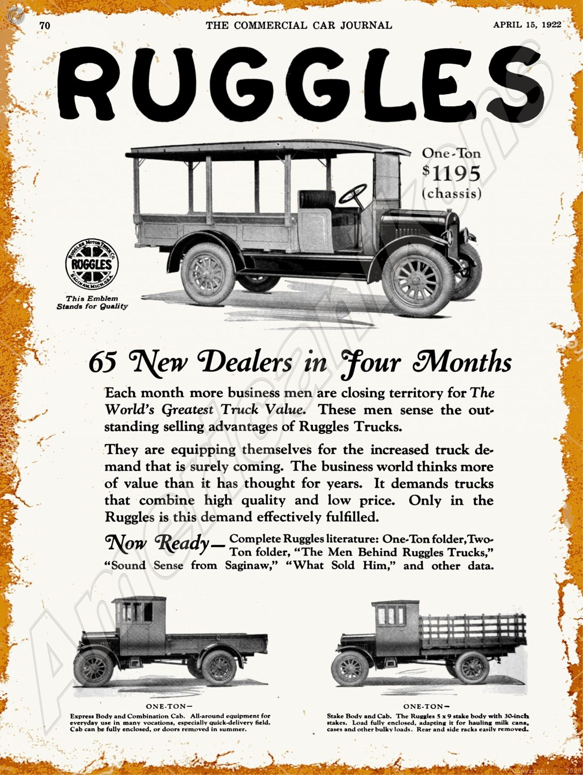 1922 Ruggles Trucks Collectible Metal Sign: Saginaw, Michigan