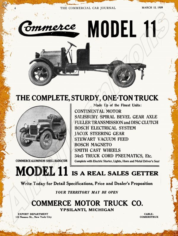 1924 Commerce Motor Trucks Collectible Metal Sign: Ypsilanti, Michigan