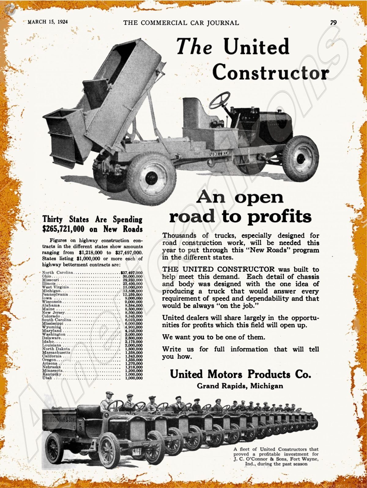 1924 United Motor Trucks Collectible Metal Sign: Grand Rapids, Michigan