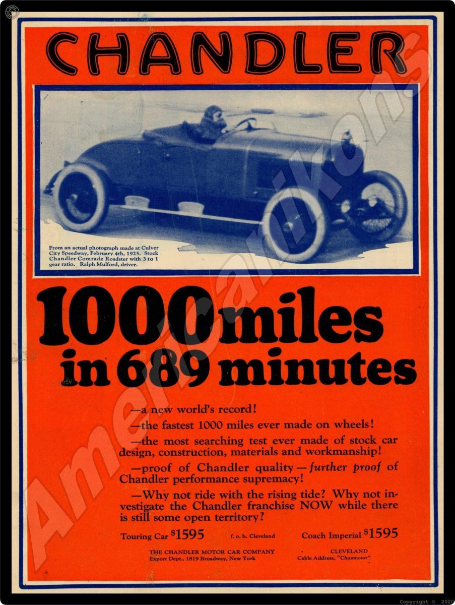 1925 Chandler Automobile Collectible Metal Sign: Culver City, California Speedway – Ralph Mulford in Comrade Roadster