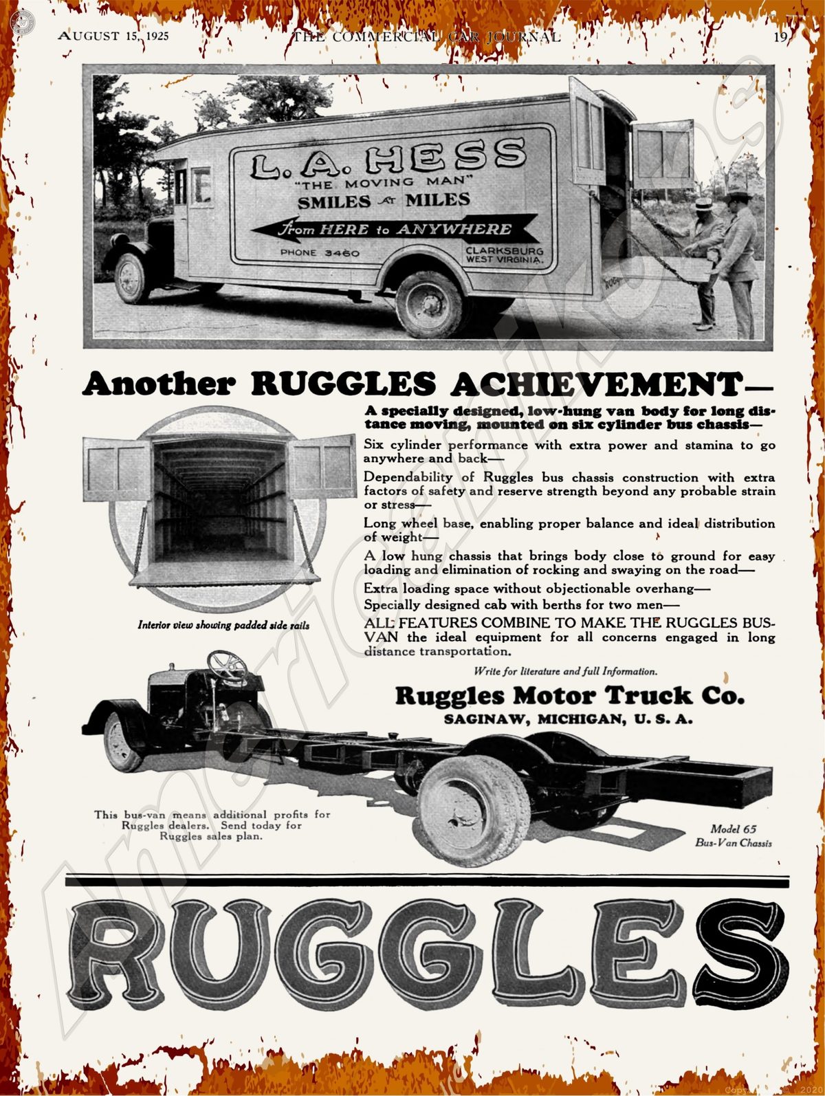 1925 Ruggles Trucks Collectible Metal Sign: Saginaw, Michigan