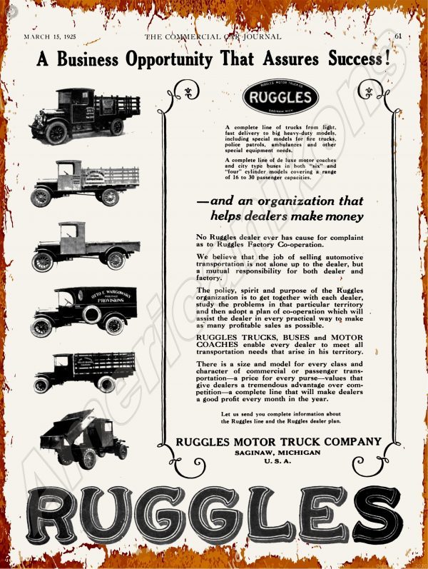 1925 Ruggles Trucks Collectible Metal Sign: Saginaw, Michigan