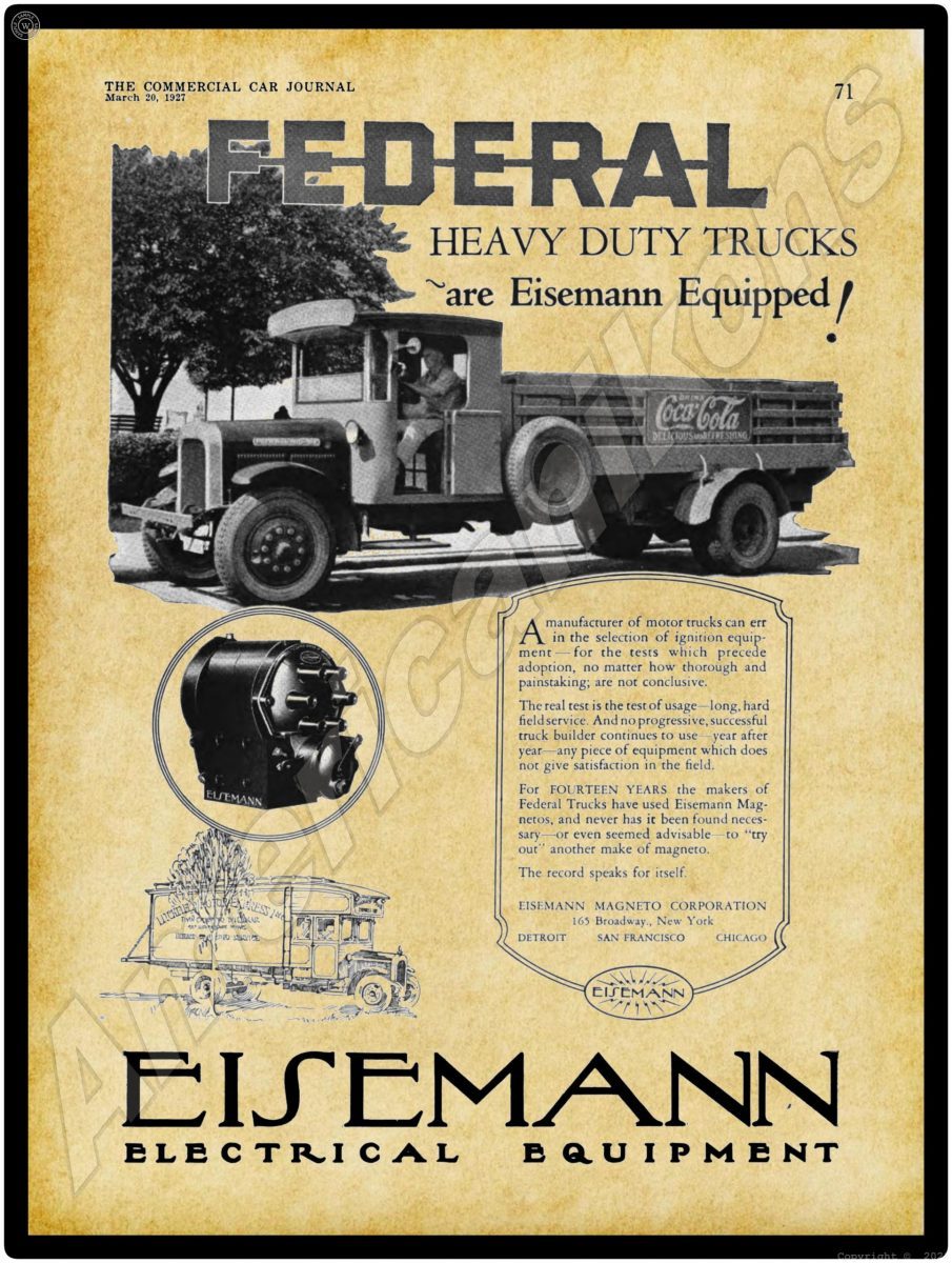 1927 Federal Trucks Collectible Metal Sign: Eisemann Magnetos – NYC