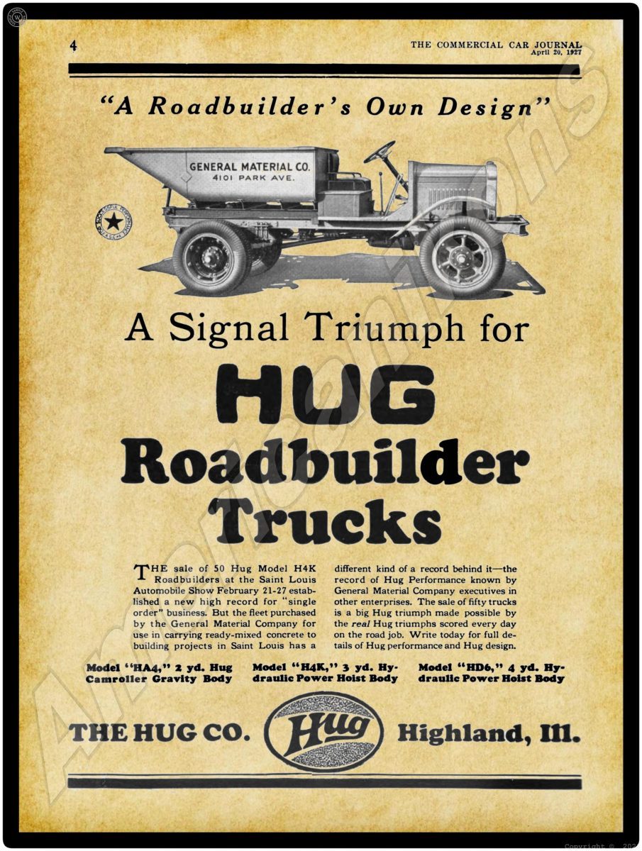 1927 Hug Trucks Collectible Metal Sign: Highland, Illinois