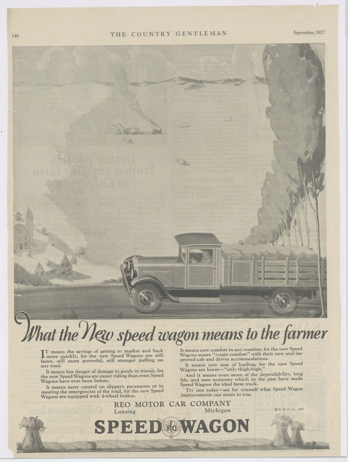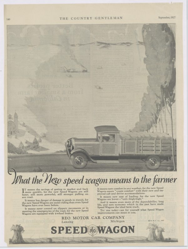 1927 REO Speedwagon Collectible Truck Advertisement: REO Motor Car Company, Lansing, Michigan