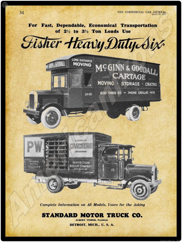 1927 Standard Motor Trucks Collectible Metal Sign: Detroit, Michigan