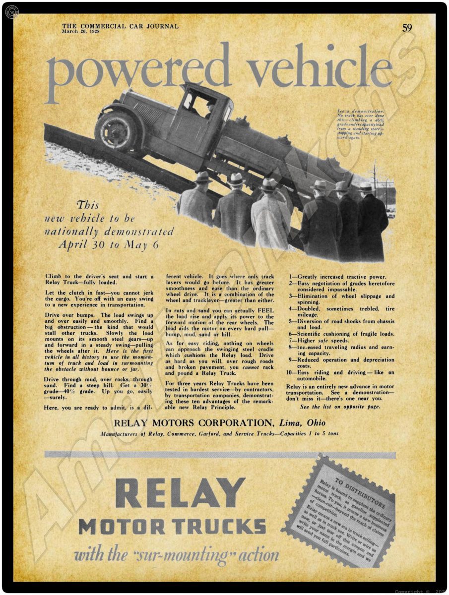1928 Relay Trucks Collectible Metal Sign: Relay Motors – Lima, Ohio