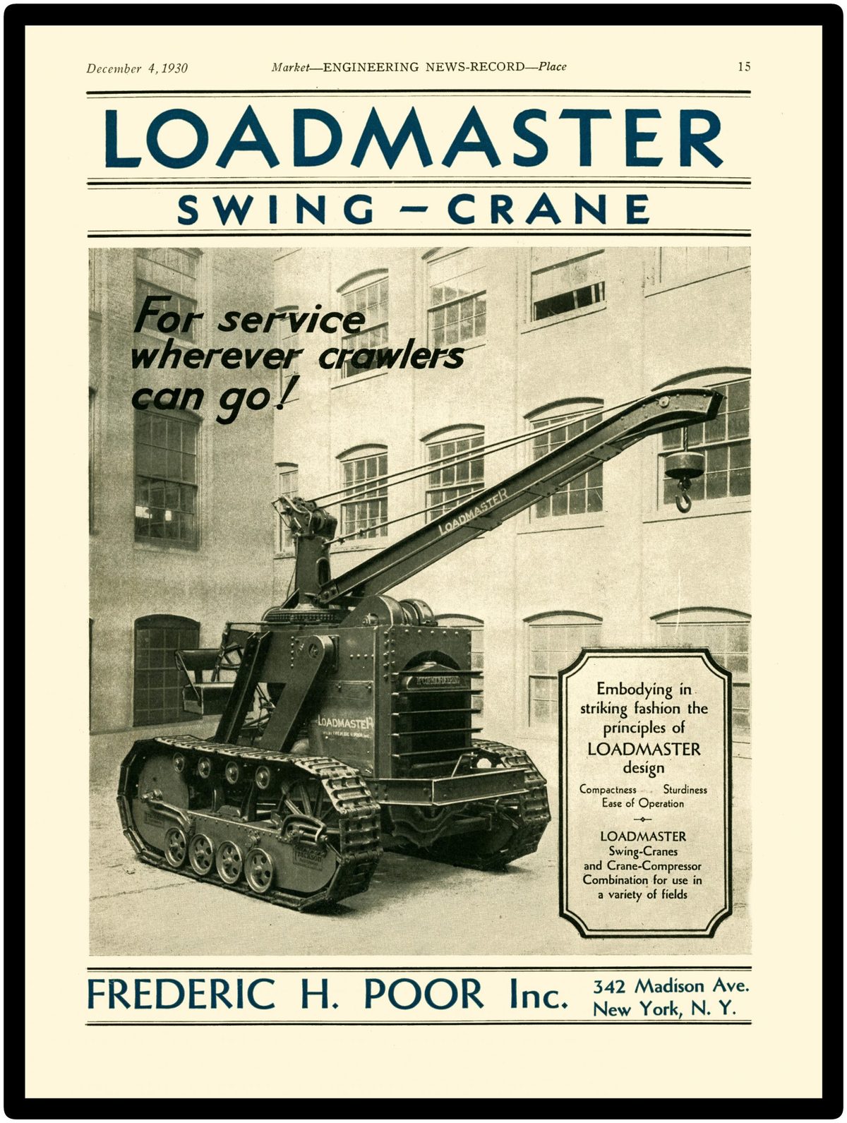 1929 Frederic Poor Inc. Loadmaster Swing Crane Collectible New Metal Sign