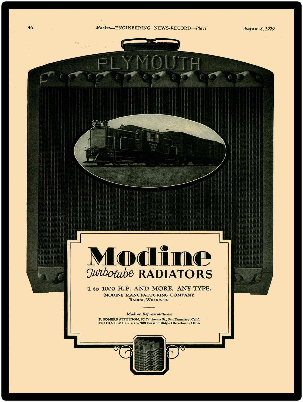 1929 Modine Radiators Collectible New Metal Sign: Plymouth Locomotives
